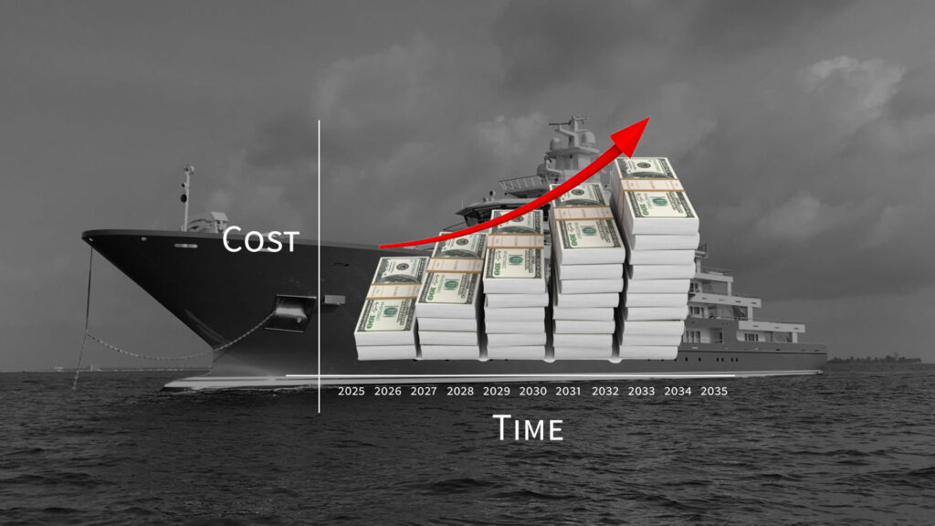 The energy costs are dependent on a yachts energy efficiency. This is not just main engines and generators, it also requires improvement and optimisation of every system and design element. Many of the solutions are already here, it just takes a willingness to accept the ‘green premium’.